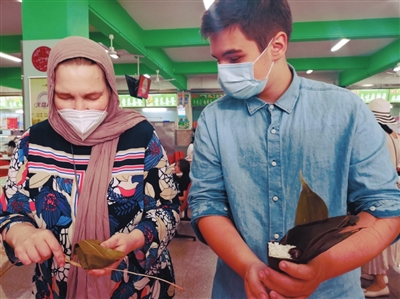 當(dāng)天活動(dòng)中,外國(guó)專家和家屬們還來到沈陽藥科大學(xué)食堂,親自動(dòng)手學(xué)習(xí)包粽子。雖然是初次體驗(yàn),但大家神情都十分專注,卷粽葉,包糯米,打繩結(jié)……一個(gè)個(gè)形態(tài)各異、包裹嚴(yán)實(shí)的粽子呈現(xiàn)盤中,成就感十足!拔襾碇袊(guó)有十多年了,非常喜歡中國(guó)的傳統(tǒng)文化和節(jié)日美食,特別喜歡吃粽子,但親手包粽子還是第一次!眮碜园突固沟陌桶蜖柺侵锌圃航饘傺芯克芯繂T,他告訴記者,自己在中國(guó)完成了博士、博士后的學(xué)習(xí)和工作,平時(shí)對(duì)中國(guó)歷史很感興趣,特別喜歡沈陽這座城市,印象中沈陽人都很熱情。
