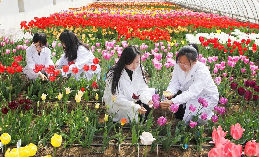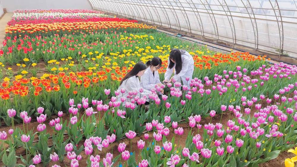 4月20日,省農(nóng)科院國(guó)家郁金香種質(zhì)資源圃里繁花似錦,圃里匯聚了數(shù)百種郁金香品種,科研人員對(duì)各類郁金香進(jìn)行活體保存與精準(zhǔn)鑒定,系統(tǒng)開展雜交育種試驗(yàn),進(jìn)而持續(xù)選育適應(yīng)性強(qiáng)、花色花型優(yōu)異的自主新品種。(遼寧日?qǐng)?bào)記者 白琳)
