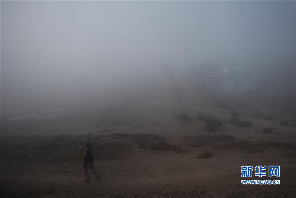 12月10日,一名行人經(jīng)過印度哈里亞那邦城市金德附近的一個村莊。新華社記者鄭煥松攝