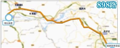 根據(jù)線路走向,898路從地鐵朱辛莊站出發(fā)不遠(yuǎn)處就可以上京藏高速,中途不設(shè)站,直接到達(dá)涿鹿。高速路段公里數(shù)超過(guò)百公里。此外,880路由目前首末站華僑農(nóng)場(chǎng)-德勝門,調(diào)整為沙城客運(yùn)站-地鐵朱辛莊站;880快由康莊-德勝門,調(diào)整為沙城客運(yùn)站-地鐵回龍觀站。調(diào)整后,德勝門地區(qū)這兩條公交線路將外遷,也將加強(qiáng)張家口懷來(lái)縣與北京的快速交通聯(lián)系。