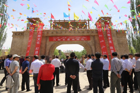 5月1日上午,麥蓋提縣數(shù)千名各族群眾身著節(jié)日的盛裝分別匯聚在麥蓋提縣庫木庫薩爾鄉(xiāng)、央塔克鄉(xiāng)和刀郎文化園,連同第三批“訪惠聚”工作組的領(lǐng)導(dǎo)及外地慕名而來的旅游團(tuán)、各界朋友,熱烈慶祝該縣“刀郎畫鄉(xiāng)”、“刀郎文化園”和“刀郎鄉(xiāng)里”三個旅游景區(qū)的開園儀式。