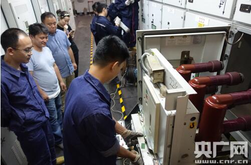 十一點半,工作人員開始核對工作票、許可票,凌晨,接電調下令并填寫倒閘操作票。為了確保工作萬無一失,在正式停電前,工作人員會在模擬圖版上模擬具體操作。