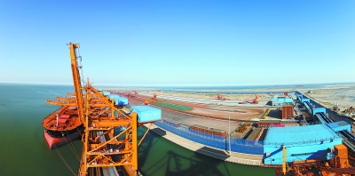 河北港口集團(tuán)滄州黃驊港礦石港務(wù)有限公司20萬噸級(jí)礦石碼頭是河北省南部沿海地區(qū)大型專業(yè)化碼頭,碼頭規(guī)劃四個(gè)泊位,先期建設(shè)兩個(gè),年設(shè)計(jì)通過能力3000萬噸。圖為碼頭正在進(jìn)行礦石卸船作業(yè)。許金廣攝
