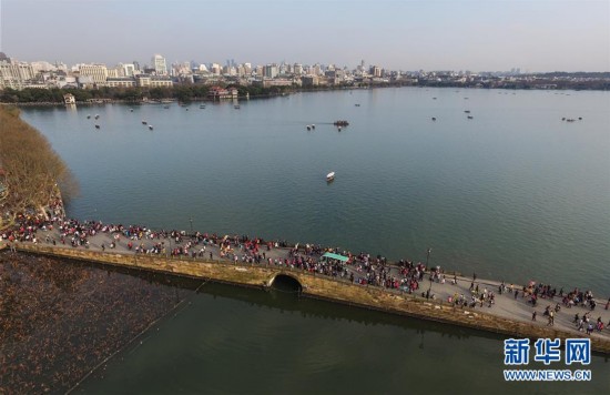 這是2月11日航拍的西湖景區(qū)斷橋。