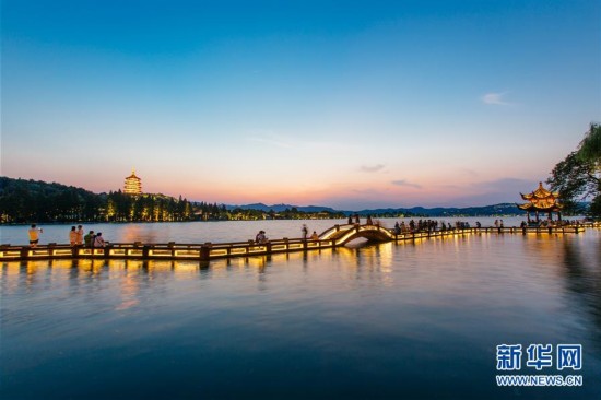 2002年起,杭州實行“西湖免費開放”,西湖環(huán)湖公園全線打通后,不設圍墻、不收門票,西湖美景成為人人能享受的公共產品。2011年6月24日第35屆世界遺產大會審議表決,“杭州西湖文化景觀”入選世界遺產名錄。圖為8月27日,游客在西湖邊涌金橋欣賞西湖風景。 新華社記者 鞠煥宗 攝 圖片來源:新華網
