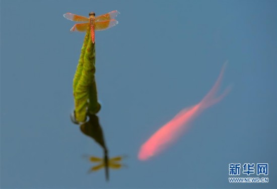 杭州西湖錢王祠門前荷塘里的錦鯉與蜻蜓(8月29日攝)。 新華社記者 尹棟遜 攝 圖片來源:新華網