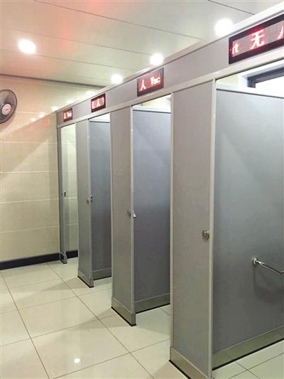 現(xiàn)在的新型公廁廁所門上有電子屏顯示是否有人。南國都市報記者胡誠勇攝