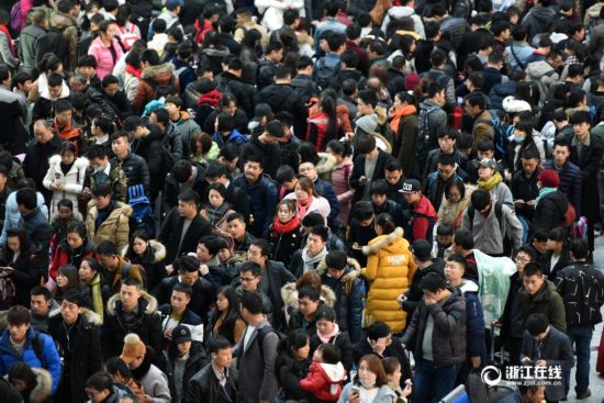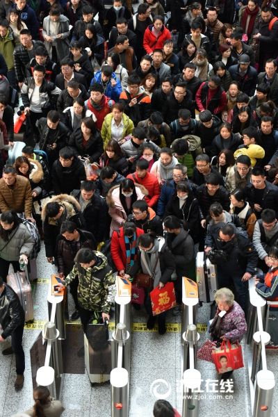 1月22日,杭州火車(chē)東站候車(chē)大廳人潮涌動(dòng),旅客們歸心似箭,行色匆匆。2017年春節(jié)日益臨近,鐵路春運(yùn)在節(jié)前最后一個(gè)周末迎來(lái)客流高峰。從杭州前往云貴、川渝、兩湖等中長(zhǎng)途返鄉(xiāng)探親客流已全線(xiàn)啟動(dòng)。(浙江在線(xiàn)記者 董旭明 攝)