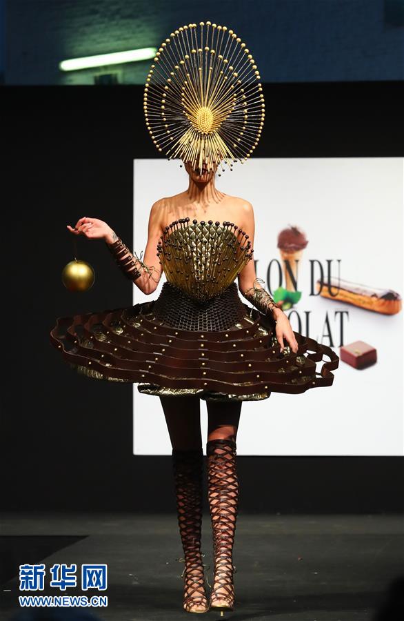 2月10日,在比利時首都布魯塞爾,模特展示巧克力時裝。當日,為期3天的第四屆布魯塞爾巧克力沙龍開幕,其中巧克力時裝秀吸引了眾多參觀者。比利時巧克力蜚聲世界,享有“巧克力王國”的美譽。新華社記者龔兵攝
