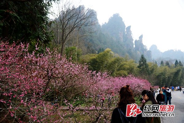 黃石寨梅園位于張家界黃石寨索道下站至老磨彎廣場路段,入春以來隨著氣溫的升高,5000株梅樹競相綻放著粉紅、淺白、淡黃多種顏色的花朵,千姿百態(tài),芳香迷人,向中外游客傳遞著張家界春天的氣息。