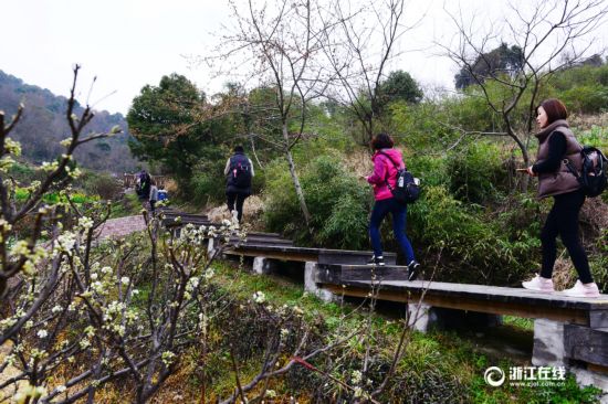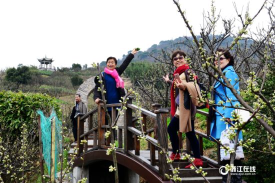 3月19日,喜歡踏青的游客在舟山市定海區(qū)金塘李子苑內(nèi)賞花拍照。由于氣候影響,金塘島上的三千多畝李花仍在含苞欲放中,但賞花游客已經(jīng)慕名而至。(浙江在線通訊員 姚峰 攝)