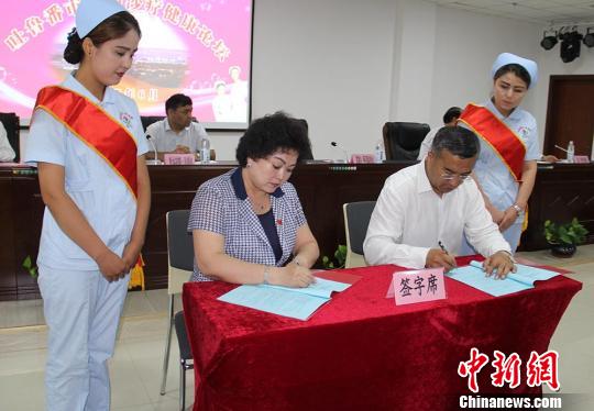 圖為新疆吐魯番市與新疆醫(yī)科大學(xué)簽訂《戰(zhàn)略合作框架協(xié)議》。 袁晶 攝