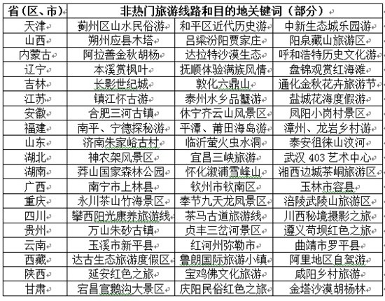 《假日旅游指南》中提示游客,多數(shù)國內(nèi)熱門旅游目的地假日旅游接待人次呈現(xiàn)出“中間高,兩頭低”的趨勢,假日前兩日或者最后兩日安排一次短途旅游將使旅途擁堵有所緩解,如前往預計較熱門的地區(qū),可安排假日前提前一天出行。同時,臨近假日,各地交通部門將發(fā)布路網(wǎng)提示,預測、監(jiān)測公路擁堵情況,廣大自駕游客可予以關(guān)注,科學選擇行車路線。長途出行,假日前幾天前往較大城市、后幾天前往中小城市的鐵路、民航線路相對寬松,可避開客運高峰。此外,一些新興的旅游線路和目的地未受到較多關(guān)注,部分熱門的旅游線路和目的地進入相對淡季,在假日期間選擇前往將大大提升旅游的品質(zhì),豐富旅行的內(nèi)涵。為方便廣大游客,部分省(市、區(qū))旅游主管部門根據(jù)歷年同期假日旅游情況,整理了一份非熱門旅游線路和目的地關(guān)鍵詞,以供參考。