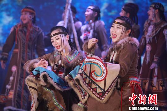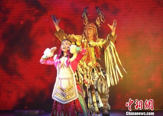 圖為鄂溫克女主角深情演繹舞臺(tái)劇 郭偉偉 攝