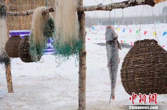 圖為冰釣現(xiàn)場(chǎng)達(dá)斡爾族人的罩魚(yú)工具 莫旗旅游局供圖