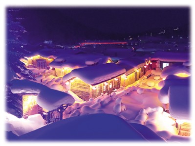 一入雪鄉(xiāng),獨(dú)具特色的房子便映入眼簾。層層疊疊的白雪從房頂順著屋檐一直垂到地上;潔白如玉的雪地上冒出一朵朵矮矮胖胖的雪蘑菇,如同天上的云朵掉落人間,輕盈可愛(ài)。雪鄉(xiāng)天黑得很早,晚上四五點(diǎn)時(shí)家家戶戶便點(diǎn)亮高掛的紅燈籠,整個(gè)村子像被施了魔法,變身為童話王國(guó),眼前的世界滿足了兒時(shí)我們對(duì)童話世界的所有幻想。三個(gè)小伙伴激動(dòng)地除了“哇”,什么都說(shuō)不出,大自然的鬼斧神工無(wú)需半點(diǎn)修飾就已美得不可方物。