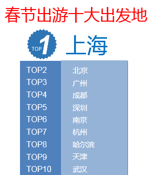 哪些城市市民報名春節(jié)旅游最為踴躍?報告預(yù)計,上海、北京、廣州、成都、深圳、南京、杭州、哈爾濱、天津、武漢將成為春節(jié)出游主力出發(fā)城市。