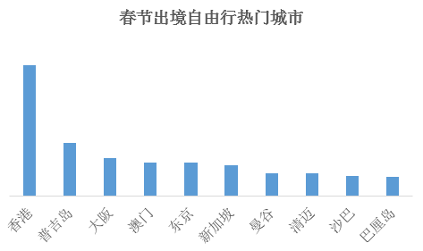 報告還發(fā)布了春節(jié)團隊、自由行春節(jié)熱門出境城市,最受自由行游客青睞的城市分別是中國香港、普吉島、大阪、中國澳門、東京、新加坡、曼谷、清邁、沙巴、巴厘島。而團隊游十大熱門城市分別是曼谷、普吉島、臺北、新加坡、中國香港、大阪、長灘島、東京、暹粒、芽莊。