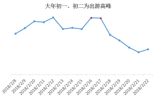 今年春節(jié)長假出行的游客中,近5成訂單選擇提前出發(fā)(2月15日之前出發(fā))或者延后返回(21日以后返回)拼假出游。根據(jù)截至2月1日的攜程跟團游、自由行訂單數(shù)據(jù),從2月8日起,出游人數(shù)就明顯上升,特別是歐美等出境游開始進入高峰。出游最高峰出現(xiàn)在大年初一、大年初二,覆蓋除夕夜的訂單占6成。