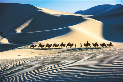 2018年農(nóng)歷春節(jié),絲綢之路歷史文化名城甘肅敦煌迎來了節(jié)日旅游高峰。數(shù)萬名來自全國各地的游客,紛紛前來敦煌著名的鳴沙山月牙泉景區(qū),騎上駱駝,暢游敦煌鳴沙山,體驗(yàn)絲路風(fēng)情、敦煌民俗,在大漠駝背上度過一個(gè)快樂的文化年、旅游年。