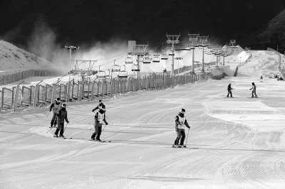冰雪體育公園最先投用的是滑雪場,造雪面積約13萬平方米,雪道總長度2089米。其中,初級雪道3條,900米長的中級雪道2條,400米長的中高級雪道1條,親子雪圈道1條,并設(shè)有單板公園和旗門練習(xí)賽道!把┑缆洳钤120米左右,中級道的坡度14度左右,可以滿足不同水平滑雪愛好者的需要!惫珗@負(fù)責(zé)人張曉晨介紹。