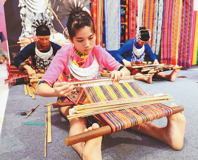 2019年文化和自然遺產(chǎn)日非遺主會(huì)場(chǎng)活動(dòng)現(xiàn)場(chǎng)展示的黎族傳統(tǒng)紡染織繡技藝。
