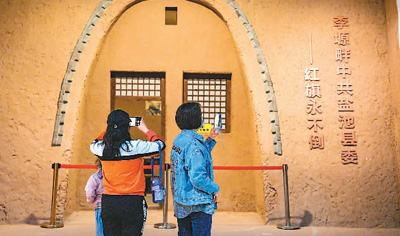 5月3日,游客在寧夏鹽池縣革命烈士紀(jì)念園內(nèi)的革命紀(jì)念館參觀。