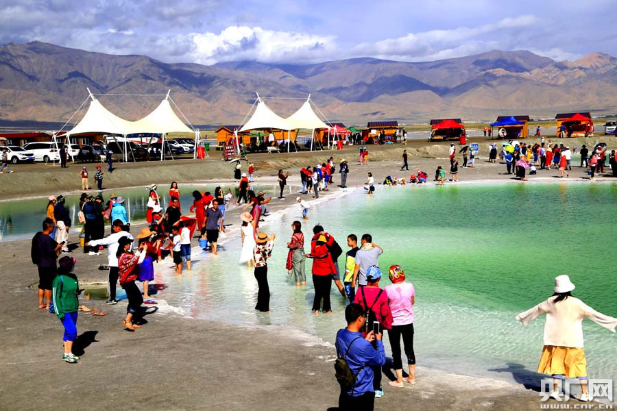 大柴旦翡翠湖游人如織(央廣網(wǎng)記者 張雷 攝)