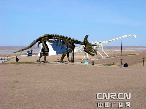 二連恐龍埋藏館景區(qū)中的恐龍骨架