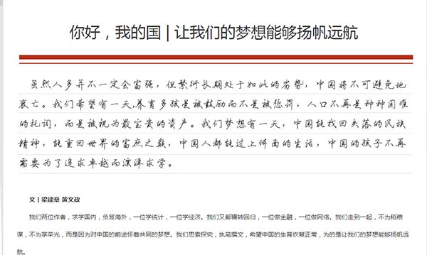 讓代表委員們寫“同題作文”,這應(yīng)該也是移動互聯(lián)時代“兩會”專題的一個全新的嘗試。征文不僅讓“你好,我的國”這個主題本身更加地落地,同時也更具傳播性和互動性。