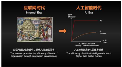 亞當(dāng)斯密在國富論開篇即提到,財(cái)富積累來自社會(huì)分工和效率提升。而王小川認(rèn)為,互聯(lián)網(wǎng)時(shí)代與人工智能時(shí)代的一大區(qū)別,即在于效率提升,這也是人工智能發(fā)展給人類社會(huì)帶來的影響之一!霸诨ヂ(lián)網(wǎng)時(shí)代,我們通過‘連接’使得信息更加透明,從而促進(jìn)人類社會(huì)分工,提升效率;而在人工智能時(shí)代,則是因?yàn)闄C(jī)器能夠比人更有效率地去學(xué)習(xí),使得我們的商業(yè)效率得到極大的提升,比如利用AI的能力,在金融、醫(yī)療、智能硬件中替代部分人類的工作”。