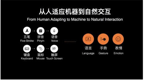“除了提升傳統(tǒng)行業(yè)效率,人工智能還會(huì)帶來人機(jī)交互的改變”。王小川解釋道,在人類輸入方式的變遷中,就可以看到從五筆到拼音到語音,從鍵盤到鼠標(biāo)到觸屏,人類和機(jī)器交互的方式已經(jīng)越來越“人性化”,通過語音識(shí)別、圖像識(shí)別等技術(shù)水平的提升,人類可以用自然的方式和機(jī)器進(jìn)行交互,而不是被迫去適應(yīng)機(jī)器,重新建立一套和機(jī)器對(duì)話的語言。