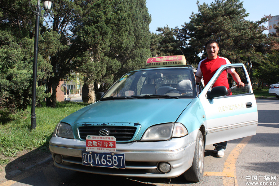 的哥劉威和他的救助引導(dǎo)車(中廣網(wǎng)記者 徐志強(qiáng)攝)