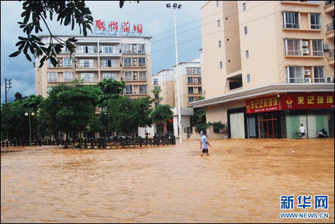 從7號(hào)晚開(kāi)始的強(qiáng)降雨突襲廣西東北部的桂林、賀州、梧州等地,78個(gè)鄉(xiāng)鎮(zhèn)降雨量超過(guò)100毫米。其中廣西興安縣局部降雨量超過(guò)250毫米,部分地區(qū)大雨昨晚仍沒(méi)有停止。使得湘江廣西段、漓江桂林段等江河出現(xiàn)今年入汛以來(lái)最高水位,并一度超警戒水位,象鼻山景區(qū)被淹,漓江沿岸低洼區(qū)域被淹居民不斷需要轉(zhuǎn)移。桂林市消防支隊(duì)王培:“漲起來(lái)的水泡到了低洼的社區(qū),我們消防兵不停地用橡皮艇把人接出來(lái),我們現(xiàn)在還在江邊警戒!