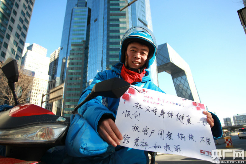 外賣員趙慶富的新年愿望(央廣網(wǎng)記者 韓靖攝)