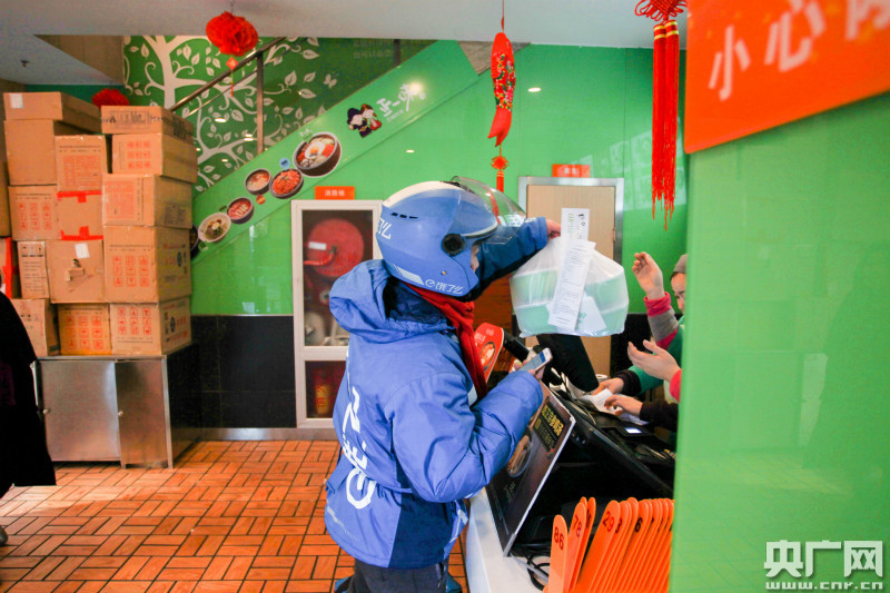 送餐(央廣網(wǎng)記者 韓靖攝)