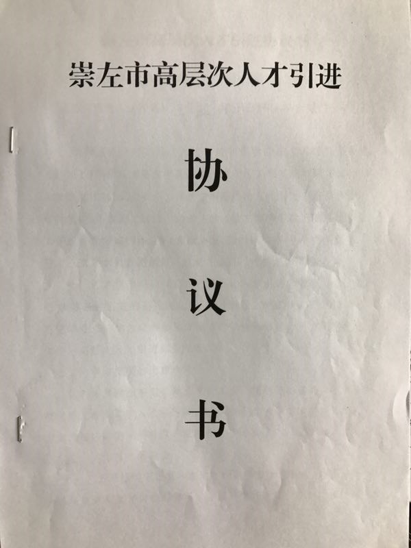 2016年12月26日,是王木木記憶中一個(gè)重要的時(shí)間節(jié)點(diǎn),這一天,他正式收到了崇左市組織部人才科(即崇左市委人才工作領(lǐng)導(dǎo)辦公室)寄來的《崇左市高層次人才引進(jìn)協(xié)議書》和《致擬錄取考生的一封信》。
