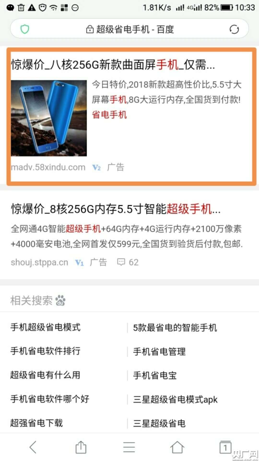 李先生網(wǎng)絡(luò)搜索購買的“超級(jí)省電手機(jī)”截圖