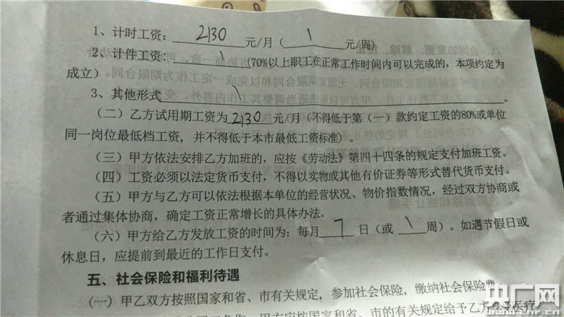 “底薪2130元,但每天要加班2小時(shí),根據(jù)廠里工人的說(shuō)法每小時(shí)加班費(fèi)是18元,那一個(gè)月應(yīng)該有4000元左右!壁w程給記者算了一筆賬。