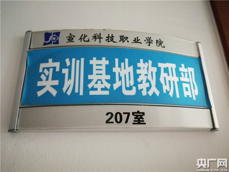 現(xiàn)代管理大學(xué)校園內(nèi)一間辦公室門(mén)口掛有“宣化科技職業(yè)學(xué)院實(shí)訓(xùn)基地教研部”字樣的門(mén)牌