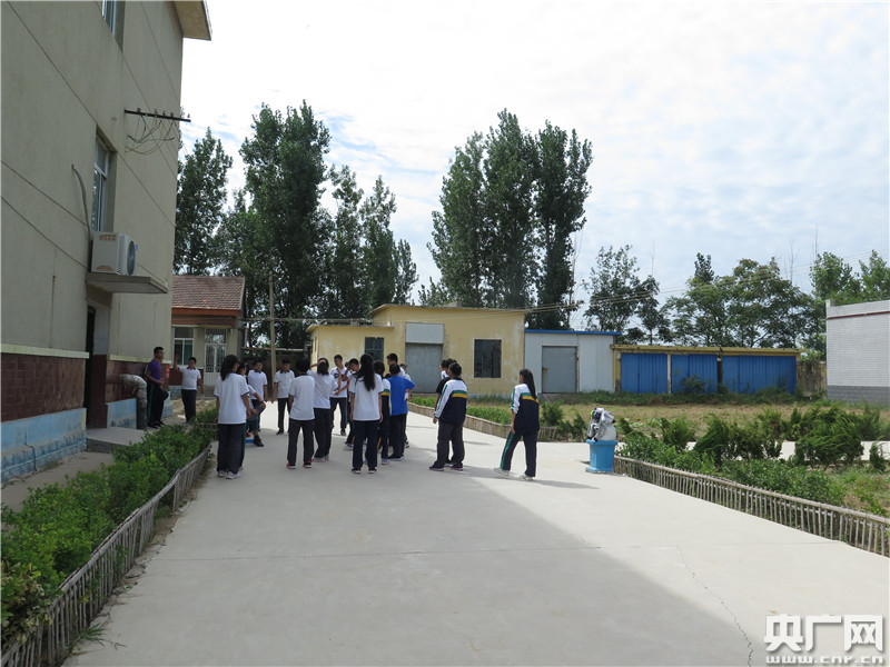 9月5日上午,學(xué)生們正在上體育課,操場還未塑膠化,學(xué)生們在教學(xué)樓前的水泥地上活動。(央廣網(wǎng)記者 孫冰潔 攝)