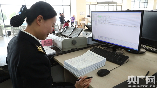 馬晨露正在處理一批新的單證。(央廣網(wǎng)記者 張佳琪攝)