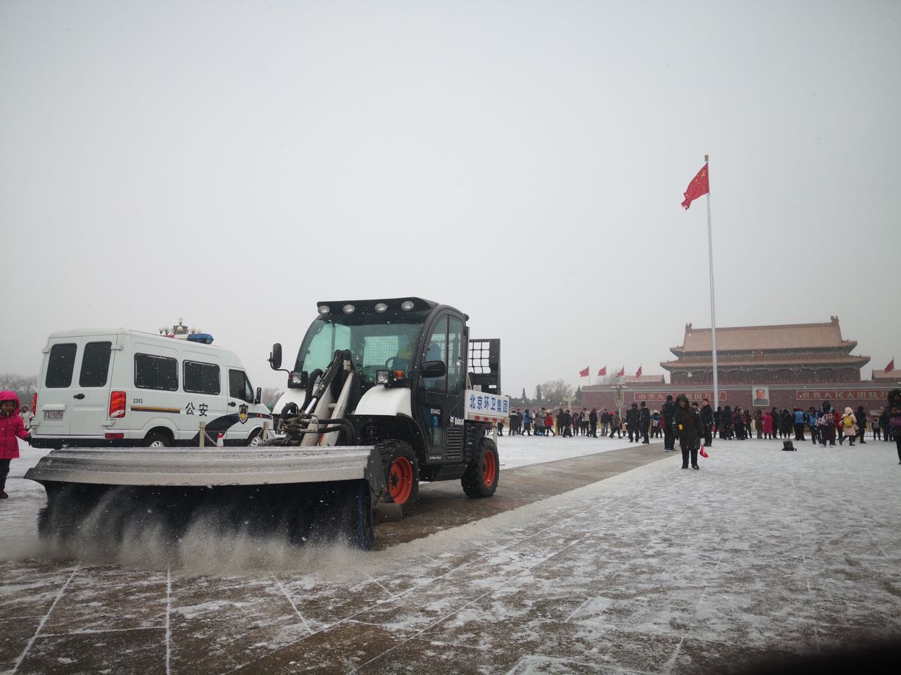 北京環(huán)衛(wèi)在天安門廣場進(jìn)行除雪作業(yè)。(央廣網(wǎng)發(fā) 溫瑩瑩攝)