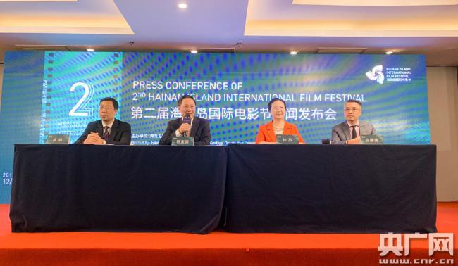 圖為第二屆海南島國際電影節(jié)新聞發(fā)布會現(xiàn)場。(央廣網(wǎng)記者 陳欣萌 攝)