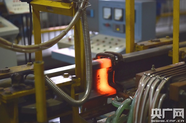 記者現(xiàn)場看到,正火過程中,焊接部位通紅,最高溫度達到890攝氏度。