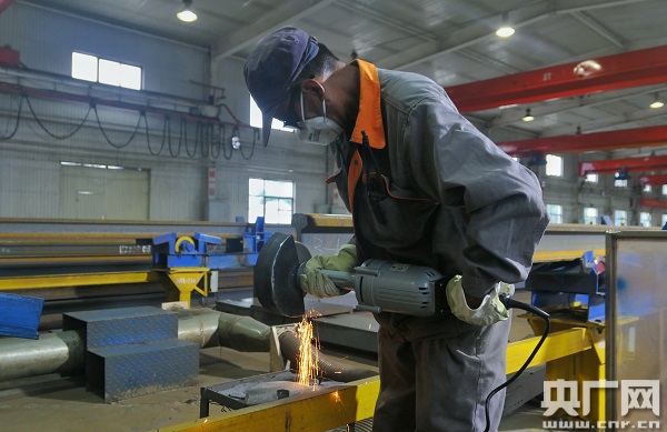 焊工正在作業(yè)(央廣網(wǎng)記者王晶 攝)