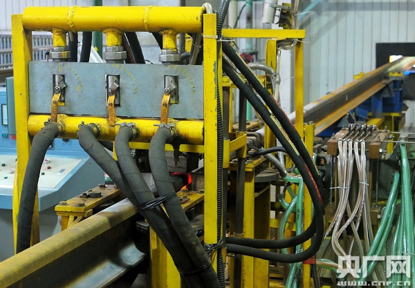 鋼軌正在進行二次“美容”(央廣網(wǎng)記者王晶 攝)