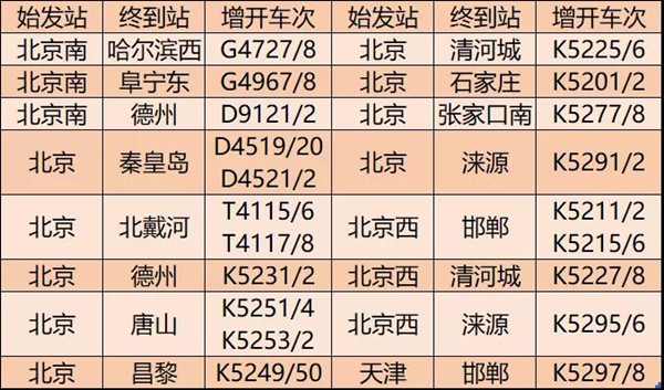 北京鐵路中秋假期增開(kāi)24對(duì)列車(chē)