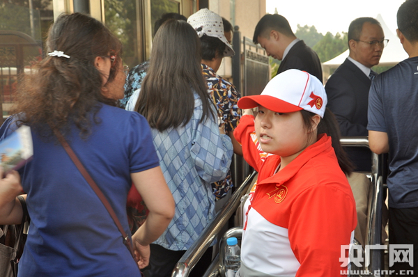 10月2日上午8時許,已有不少游客在志愿者的引導下走進天壇公園游園觀光。(央廣網記者 王子衿 攝)