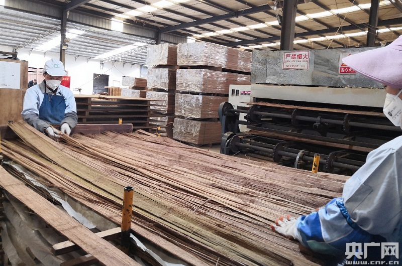 工人在加工竹片(央廣網(wǎng)記者 陳銳海 攝)